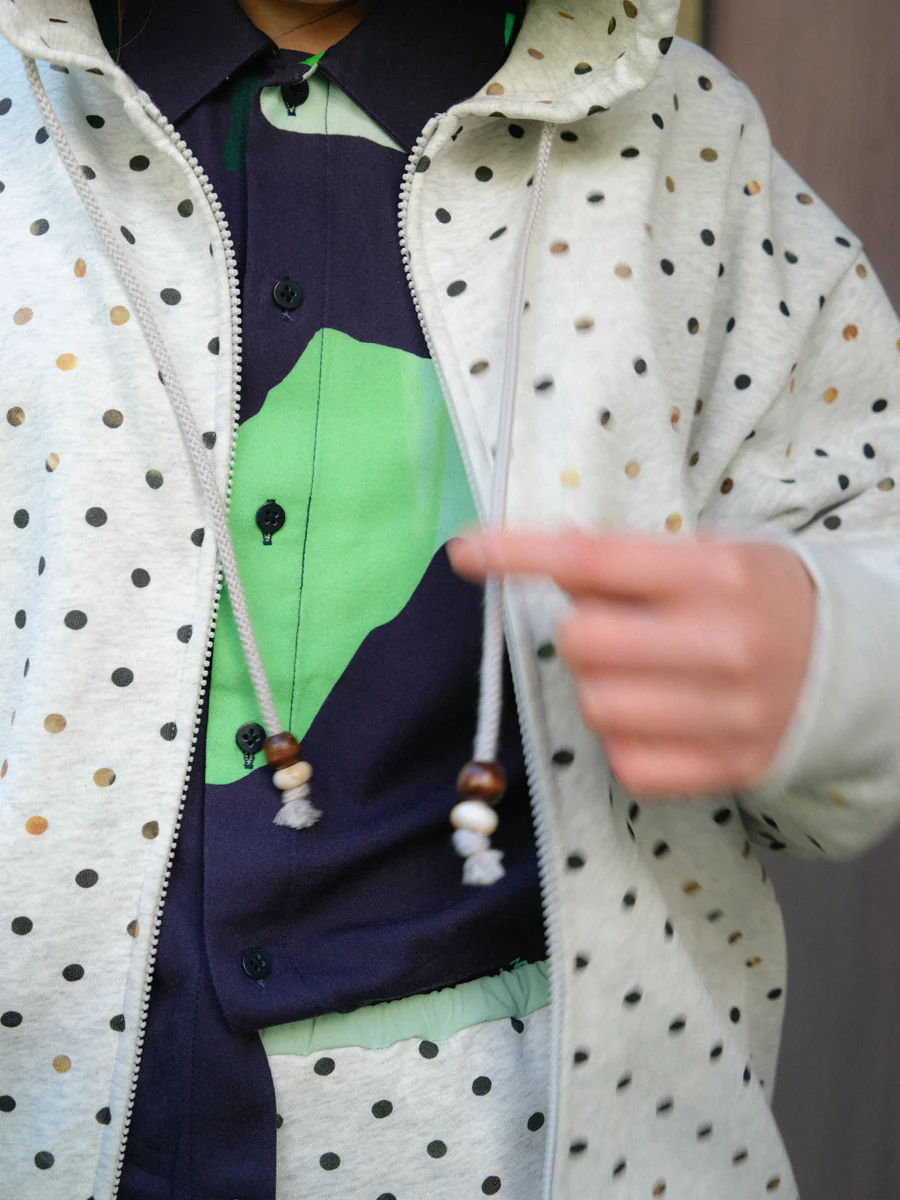 PAMM團隊的每位成員都貢獻了自己近期拍攝的照片,並以其中一張照片中出現的路邊植物為圖案,剪下形狀後進行組合,最終形成了波點圖案,格子圖案呈現出一種柔和、略帶扭曲的視覺效果,如同畫冊中的水彩畫一般。