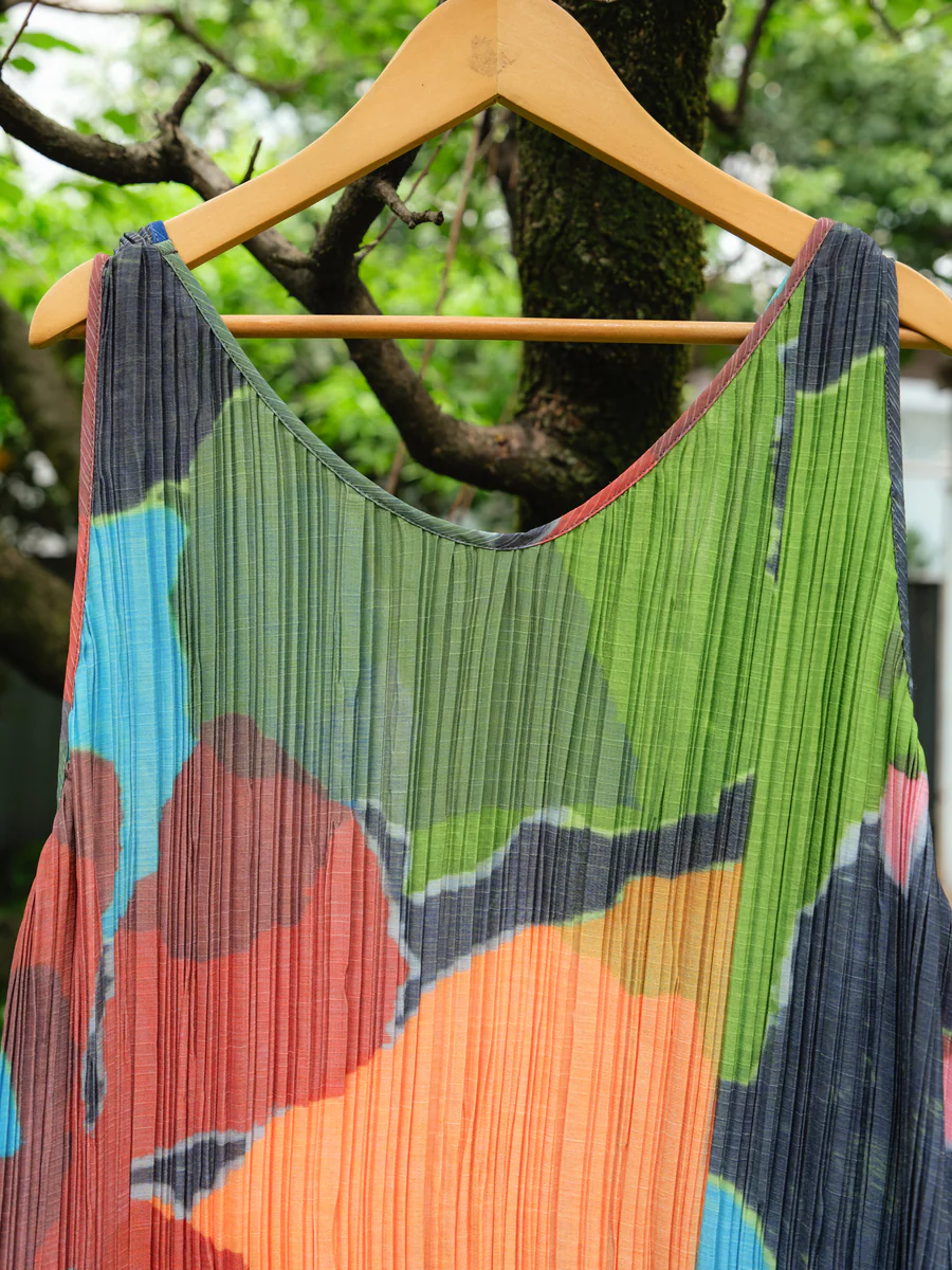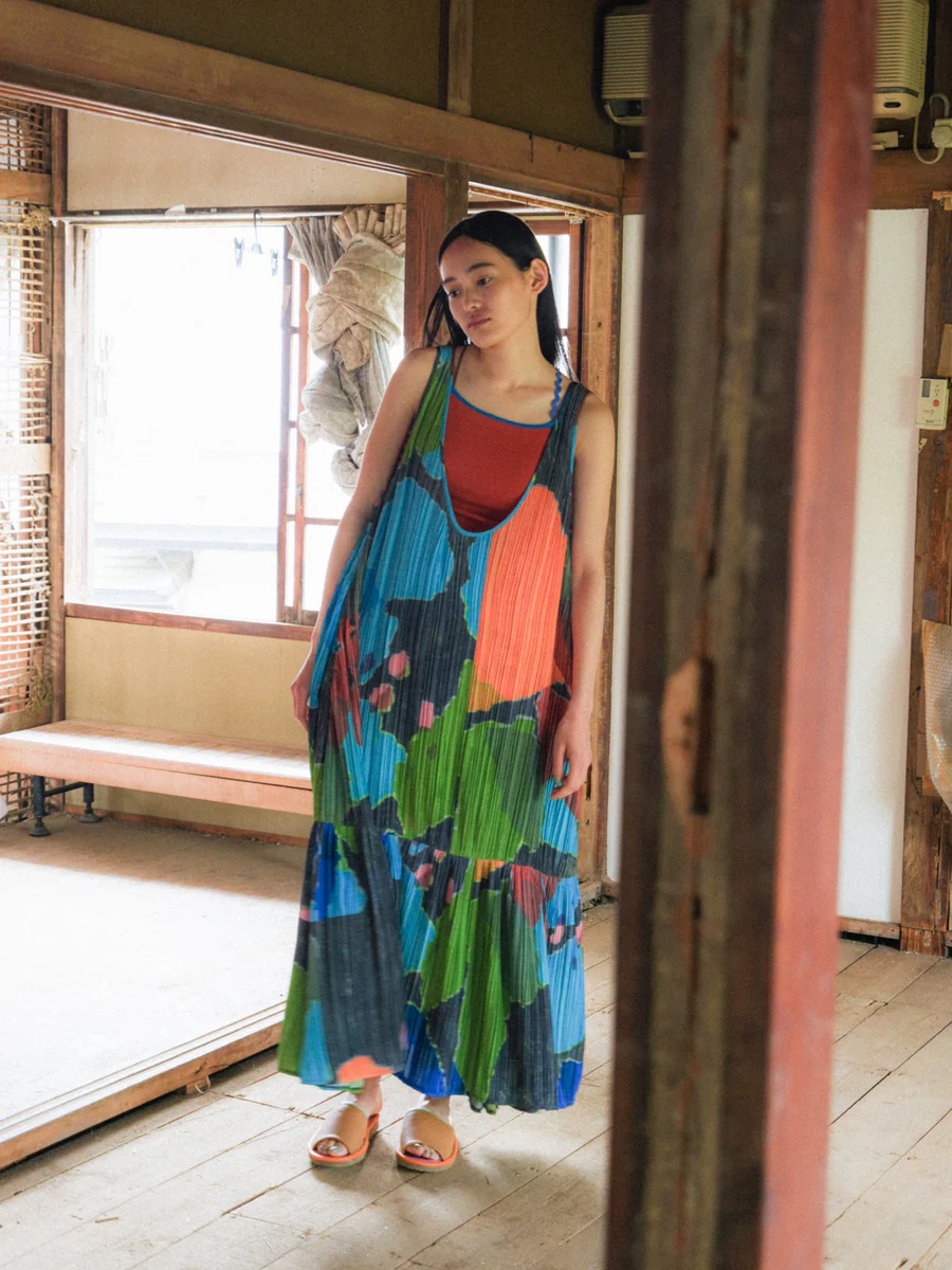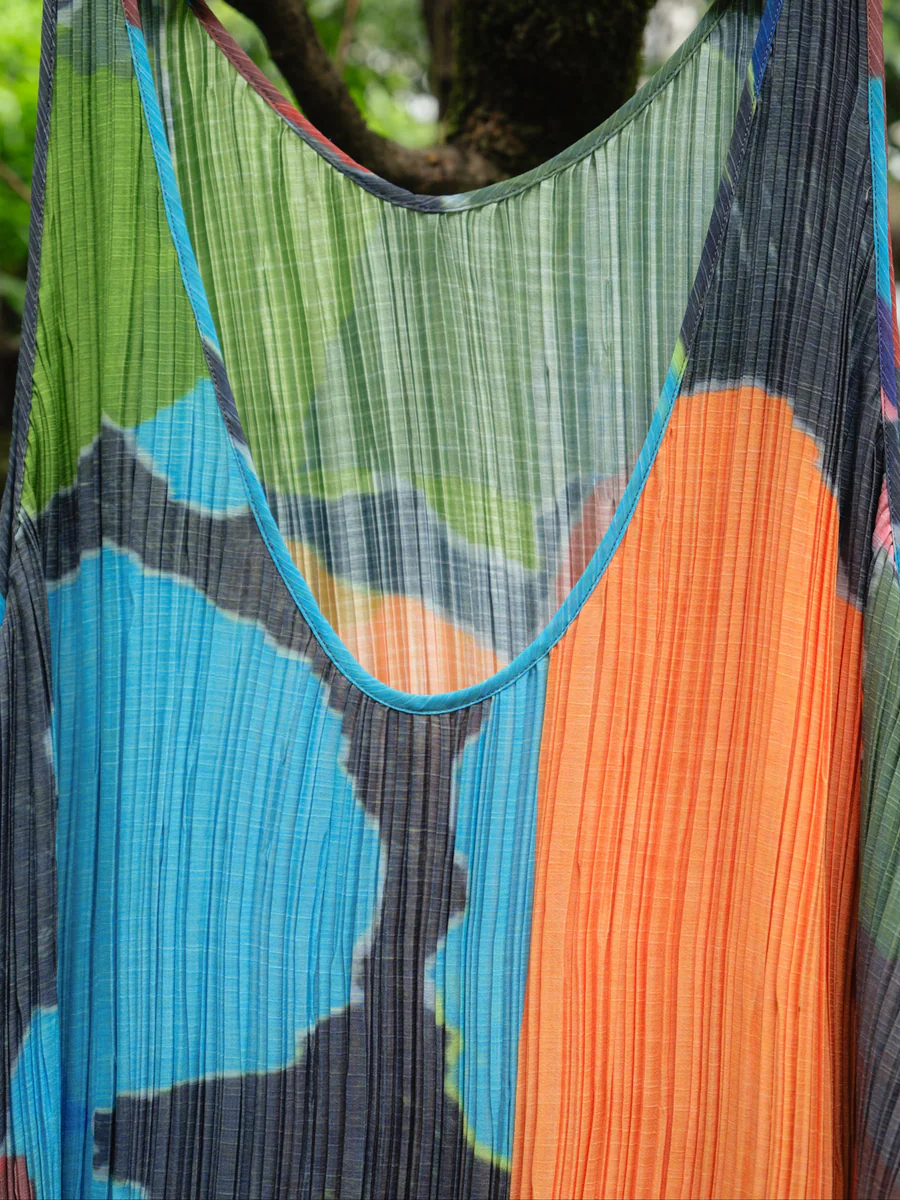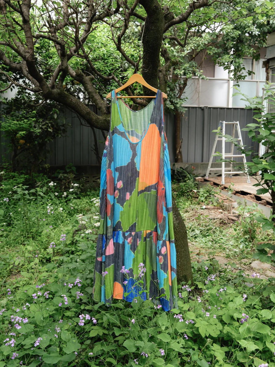 服裝的主要特點是大膽的U型領口和下擺的褶皺設計,寬鬆的版型使這款設計適合各種體型的人穿著,每個人都能用穿搭為自己的生活增添色彩。