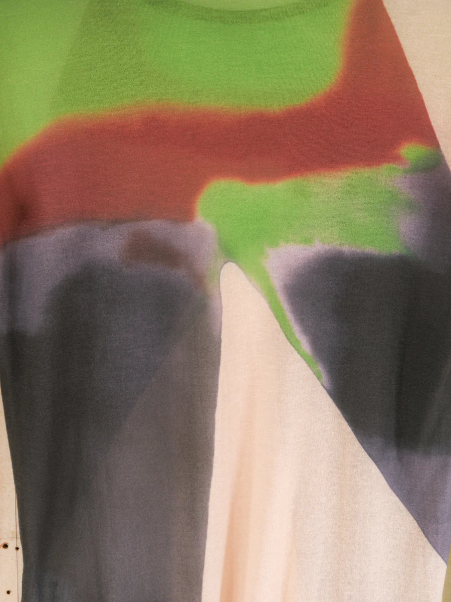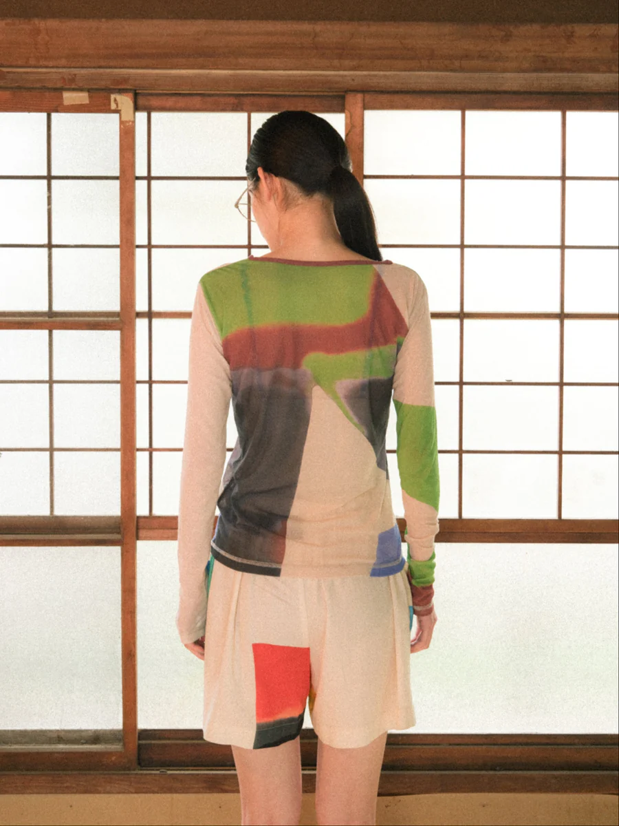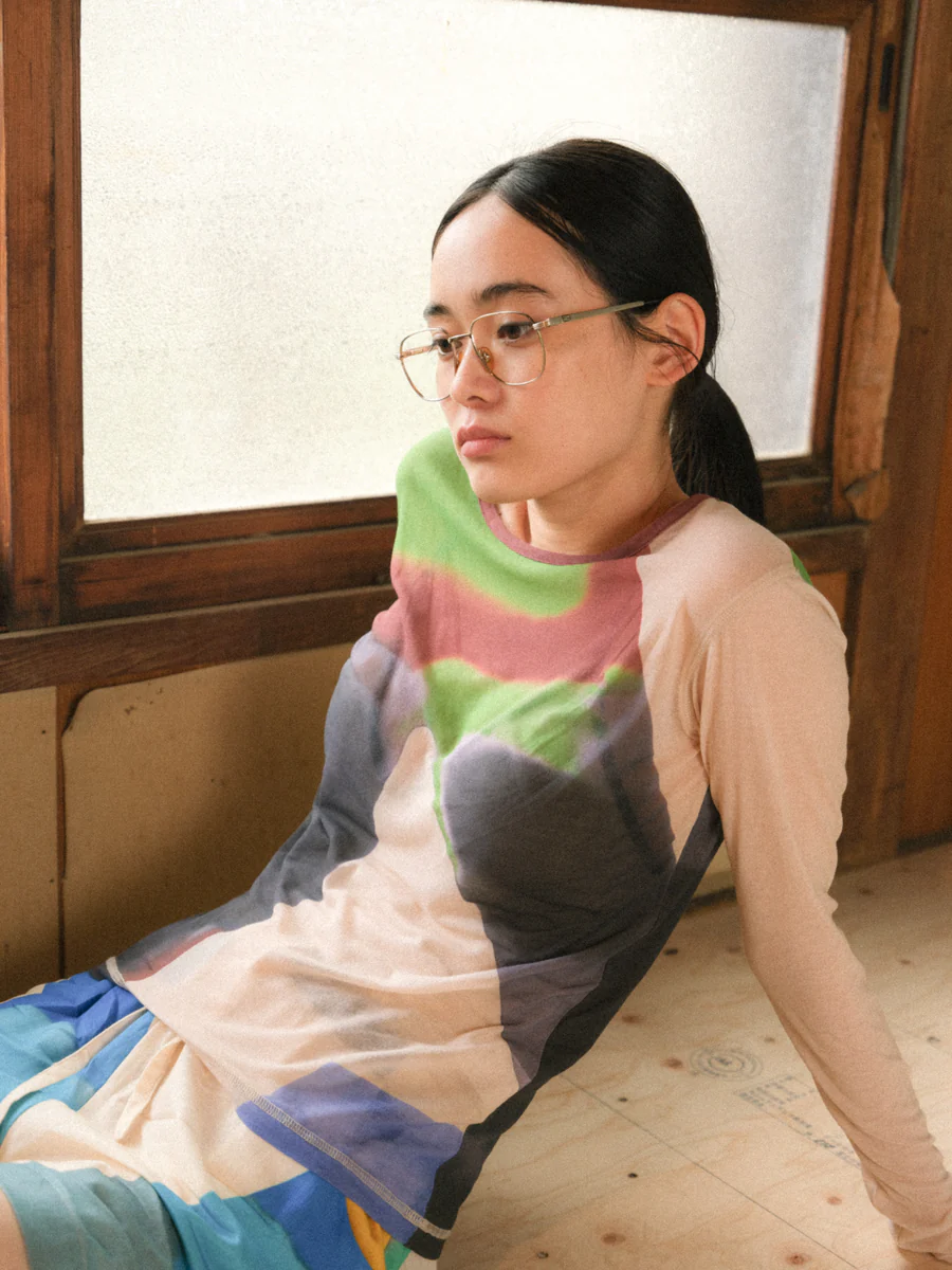 有個性的透膚色彩圖樣如同礦石或水彩一般印刷在布料上,最日常的穿搭也多了一絲雀躍跟巧思,讓人心情大好。