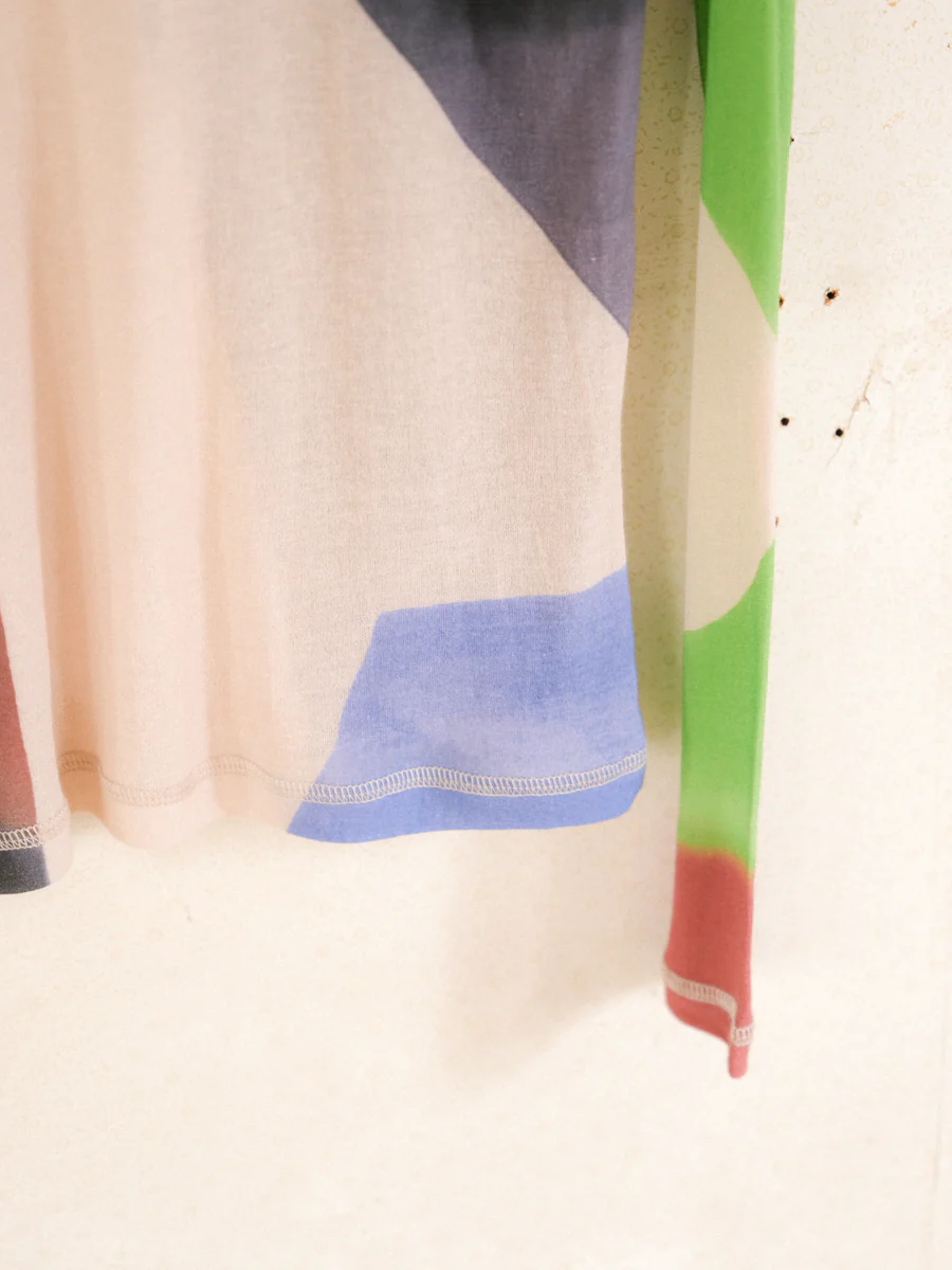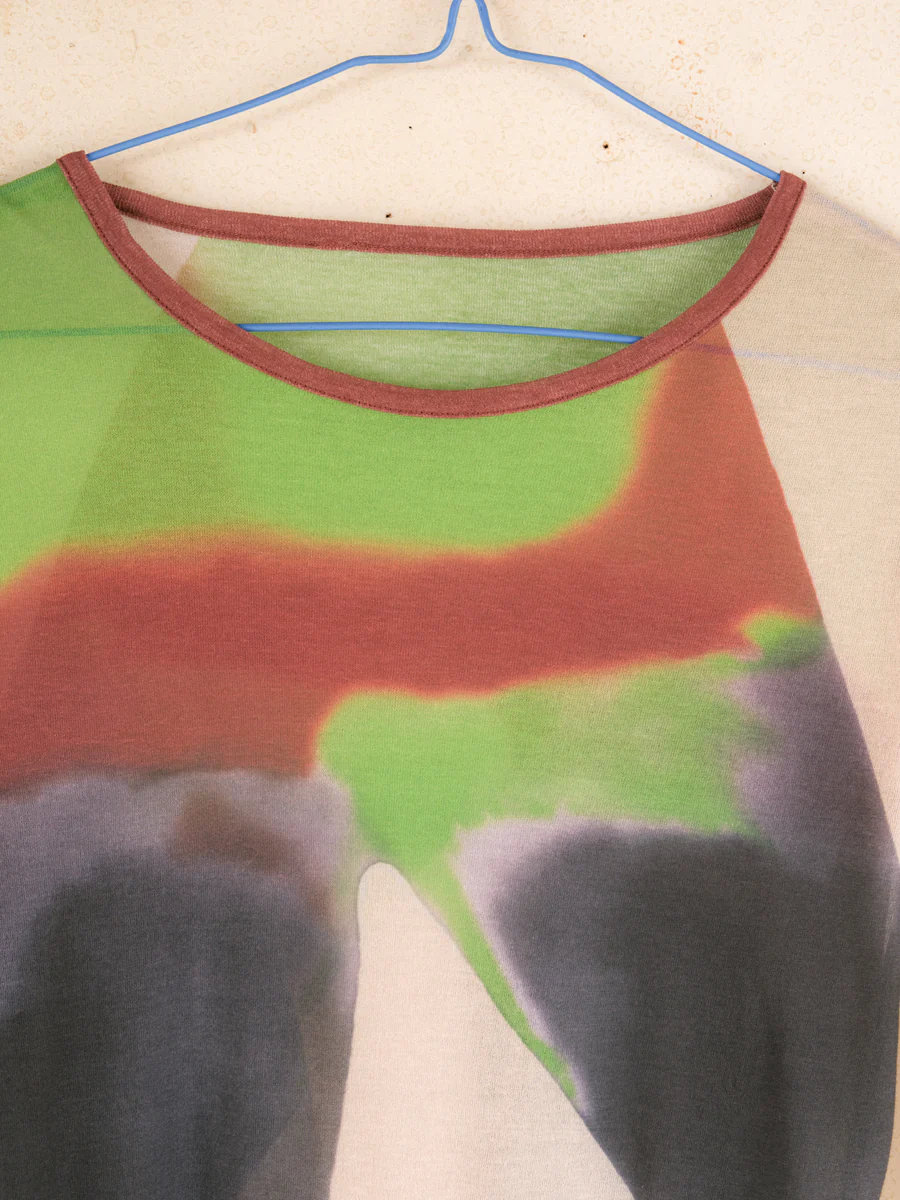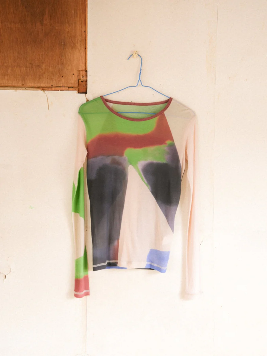 有個性的透膚色彩圖樣如同礦石或水彩一般印刷在布料上,最日常的穿搭也多了一絲雀躍跟巧思,讓人心情大好。