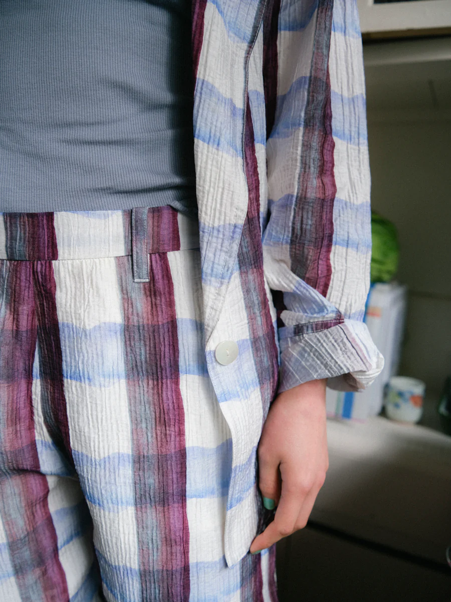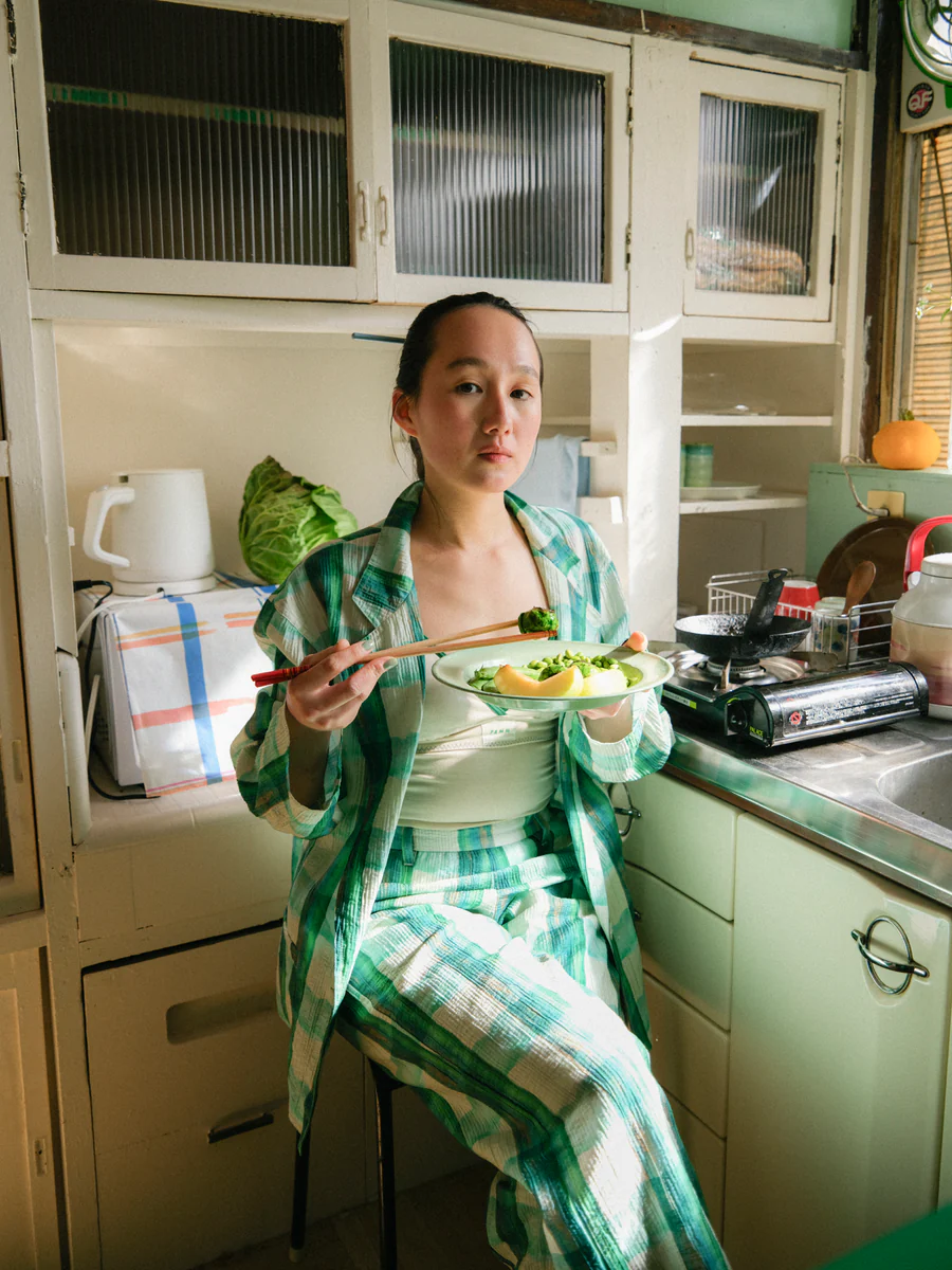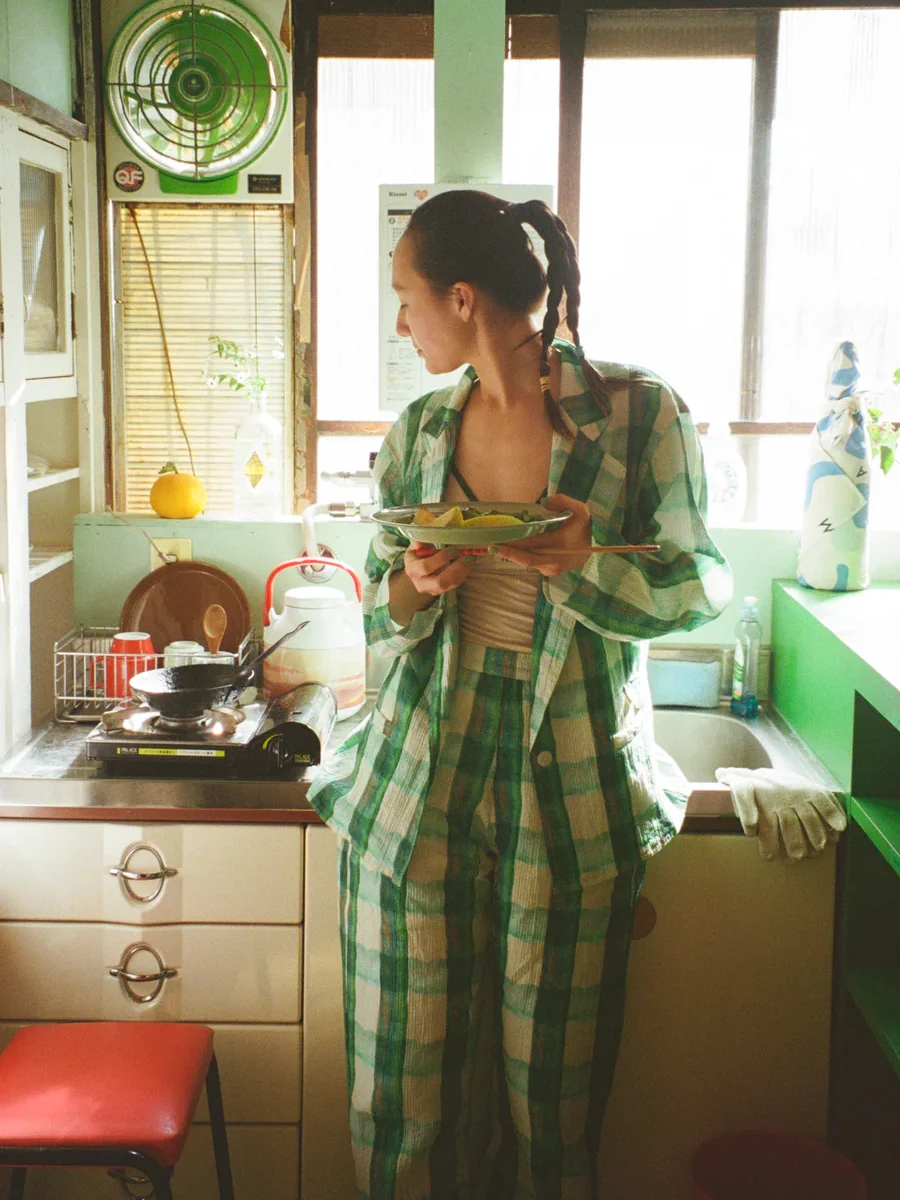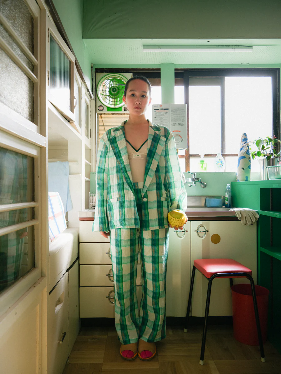 除了作為休閒搭配,有點小正式的剪裁很適合想要有點輕鬆的精緻造型的人也很推薦成套的格紋夾克。