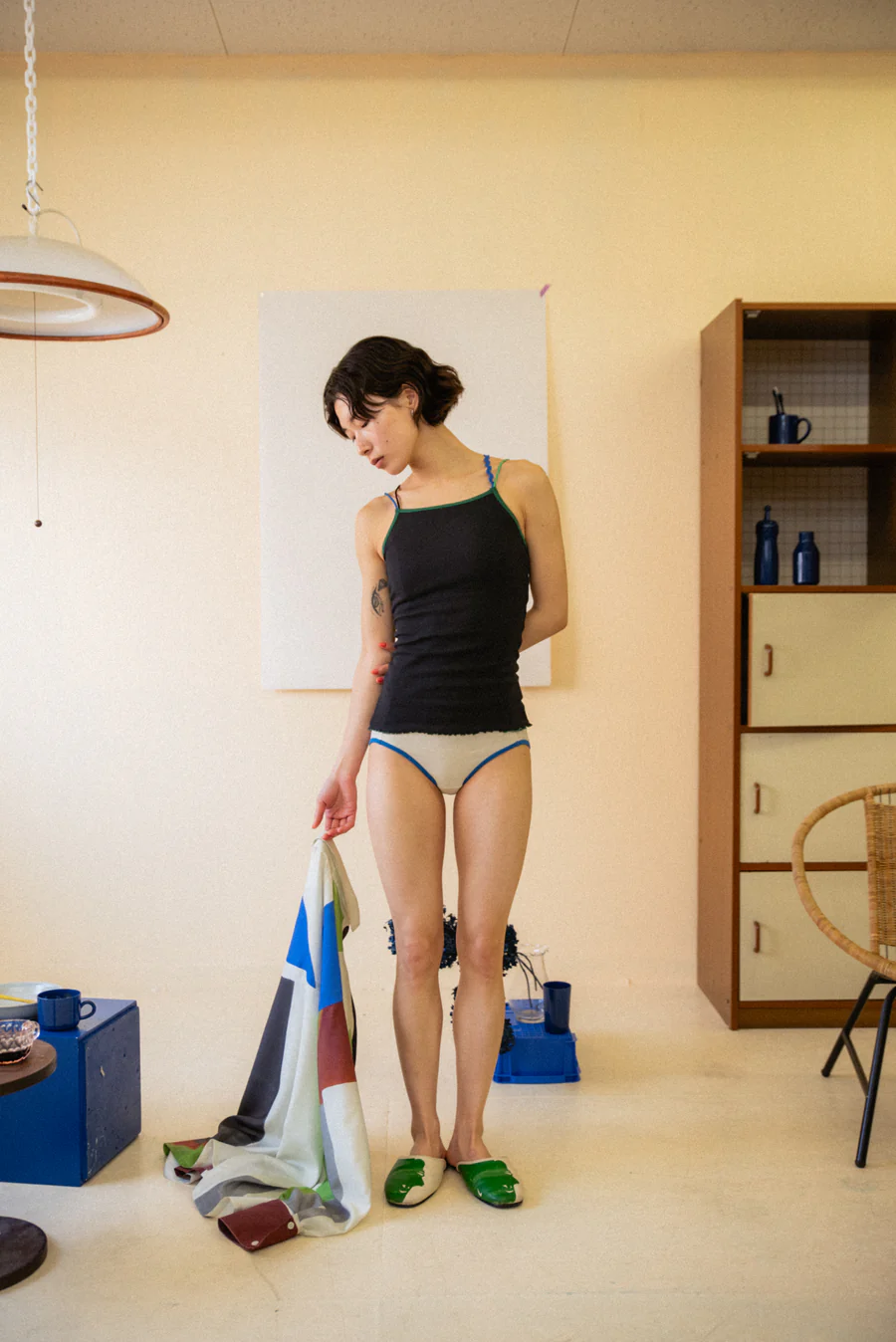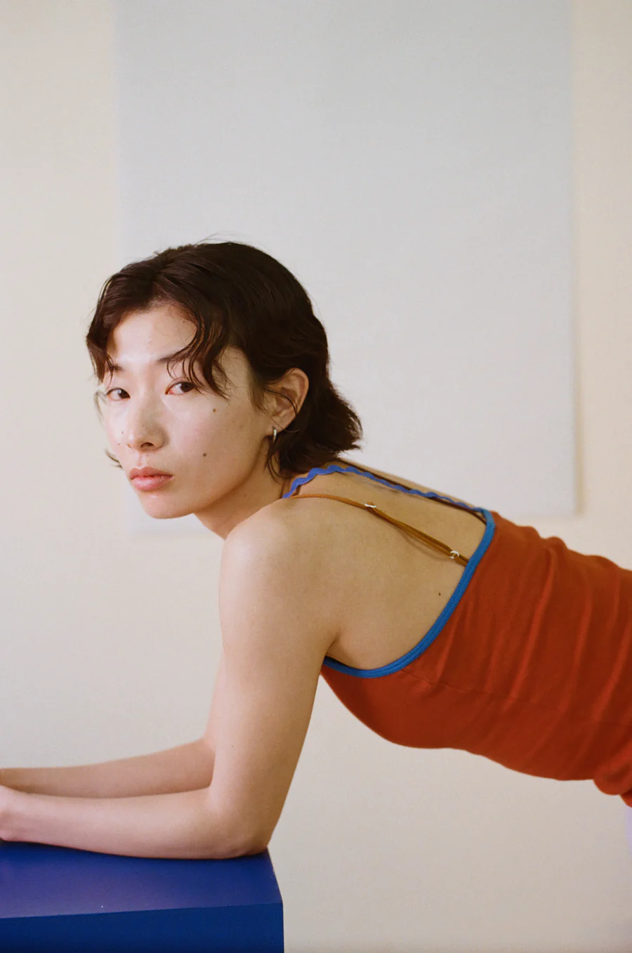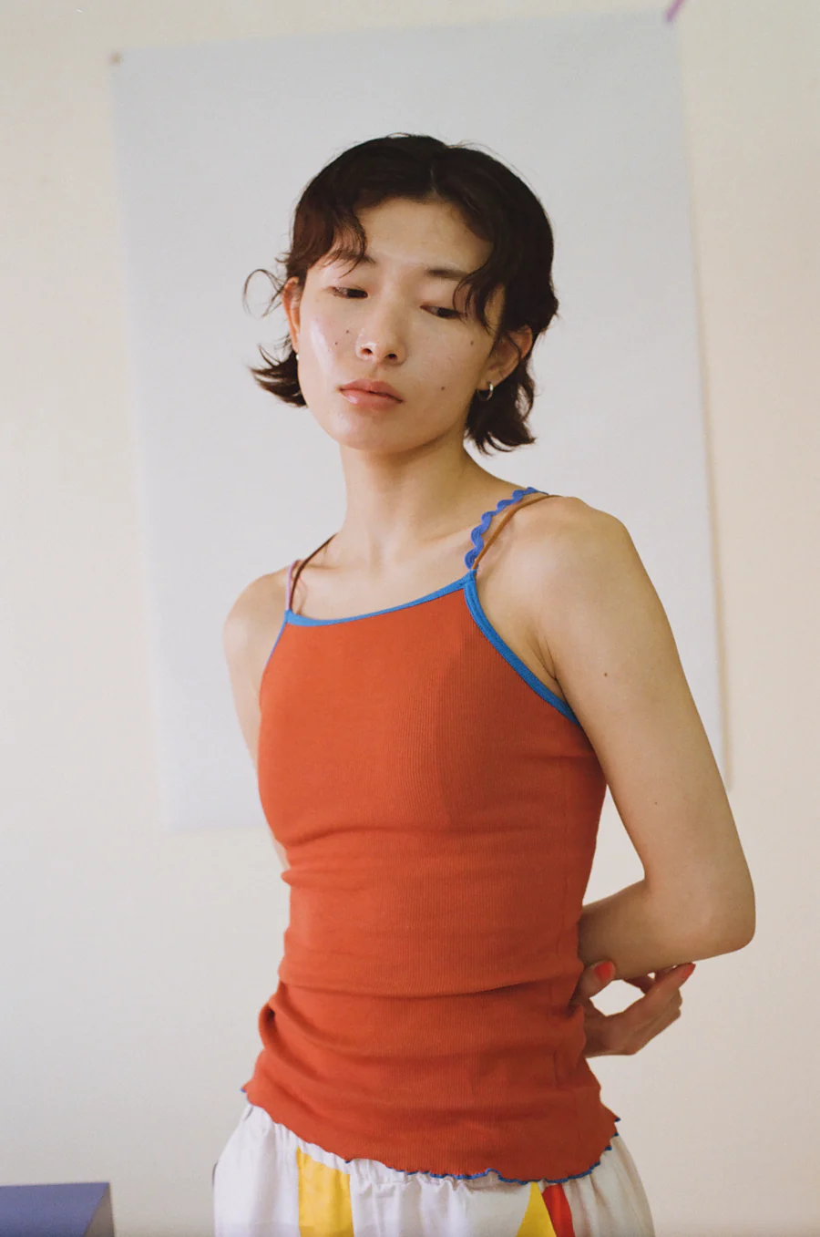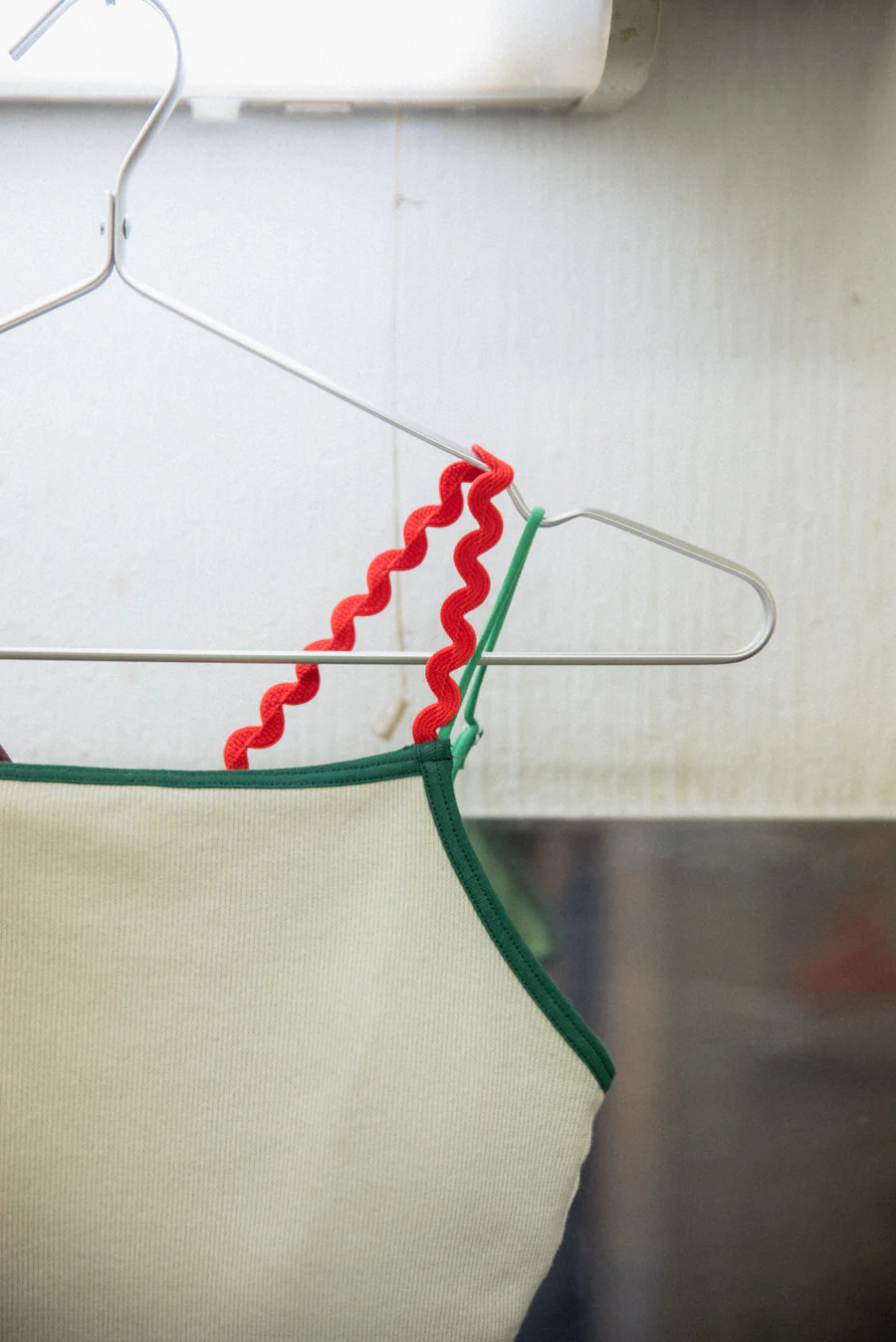 這款帶罩杯的吊帶背心採用羅紋面料製成
