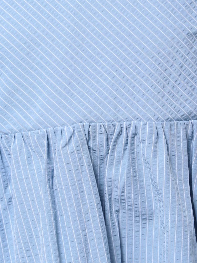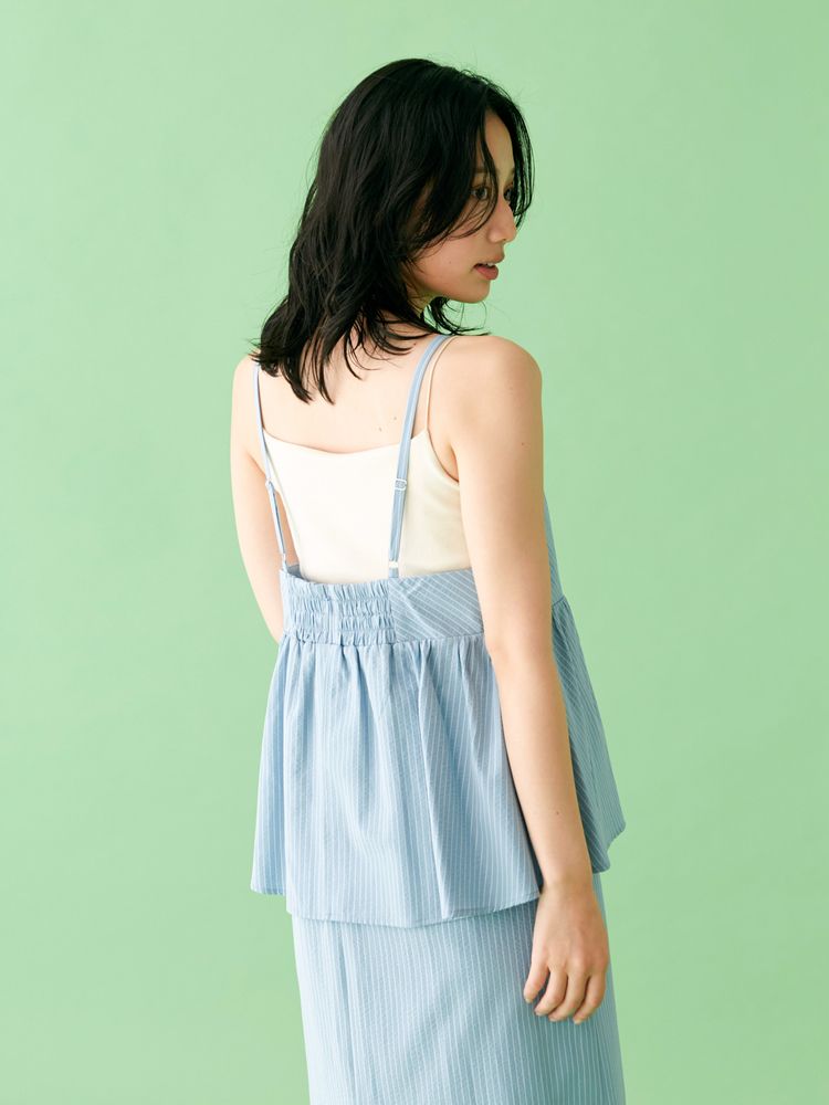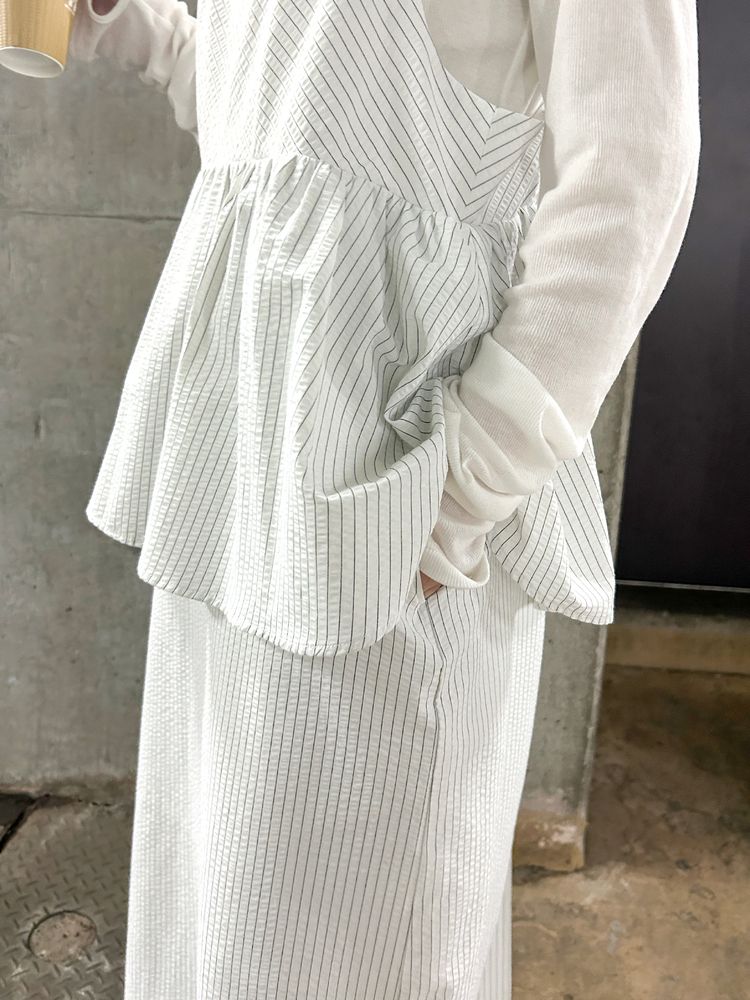 上半部分腰部有抓摺,合身胸衣設計呈A-LINE線條
